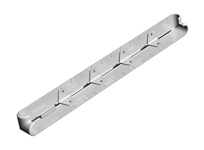 Connexion sur bandeaux Belriv Tradi. Réalisation de 2 angles avec 1 pièce. Repère de température permettant une libre dilatation du profilé