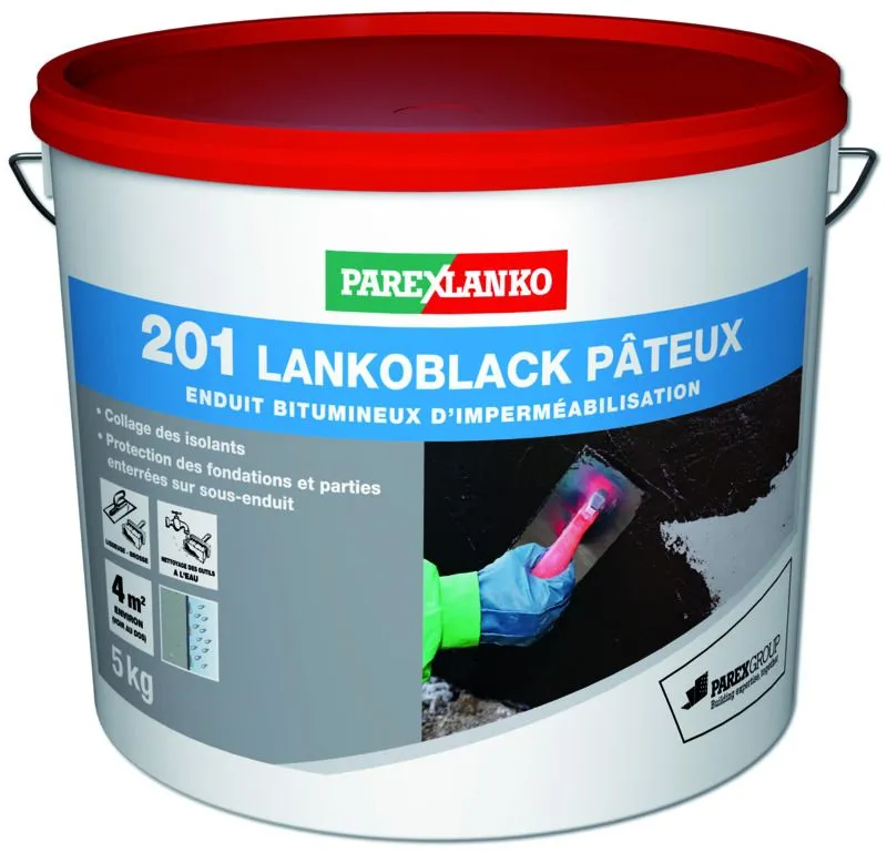 Parfaitement adapté pour l’imperméabilisation de maçonneries enterrées (parpaings) et le collage des matériaux isolants