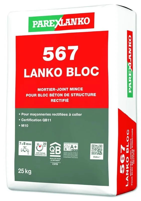 Le 567 LANKO BLOC & BRIQUE est un mortier de montage pour blocs de béton rectifiés et briques de structure rectifiés