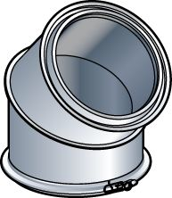 Coude à 45°isolé par laine de roche avec un embouti à chaque extrémité (Inox intérieur, Galva extérieur). Muni d’un collier de sécurité et d’une goupille. Il permet d’effectuer les dévoiements. Sens de pose indiqué sur l’étiquette.