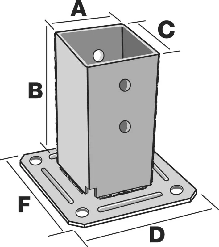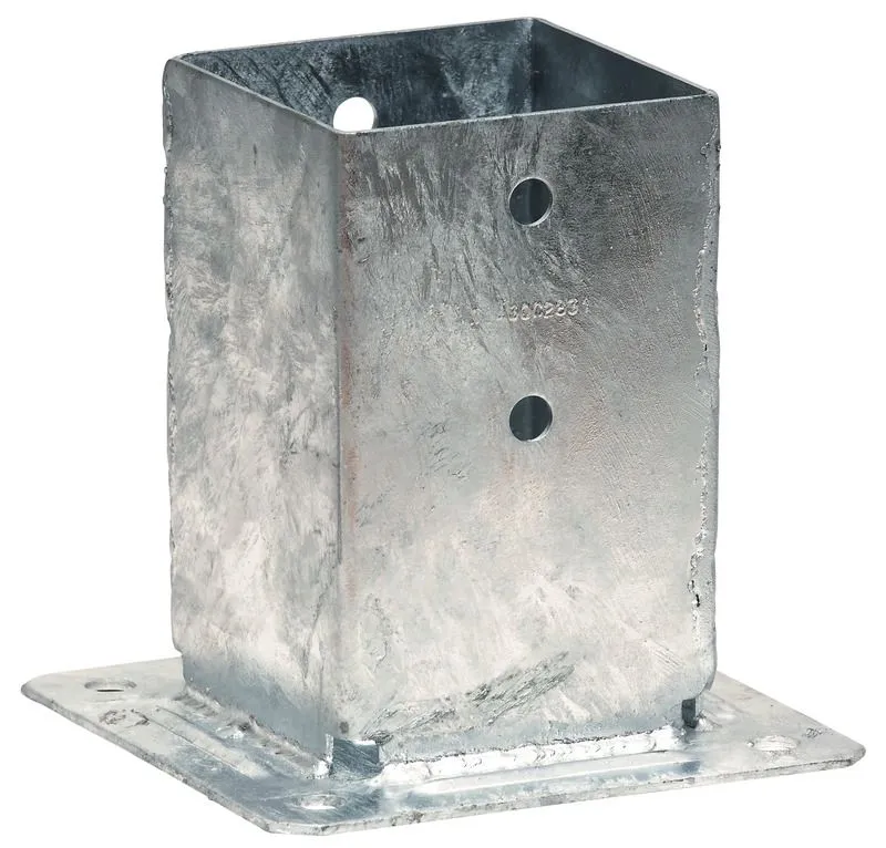 Caractérististiques : Les pieds de poteau carrés sur platine PPJBT sont préconisés dans la réalisation de petits ouvrages tels que les clôtures et structures légères de jardin. Très faciles à démonter, ils peuvent être boulonnés sur support béton et acier ou visser sur bois.
